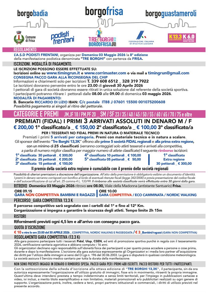 contatti  3396086512 - info@podistifrentani.it